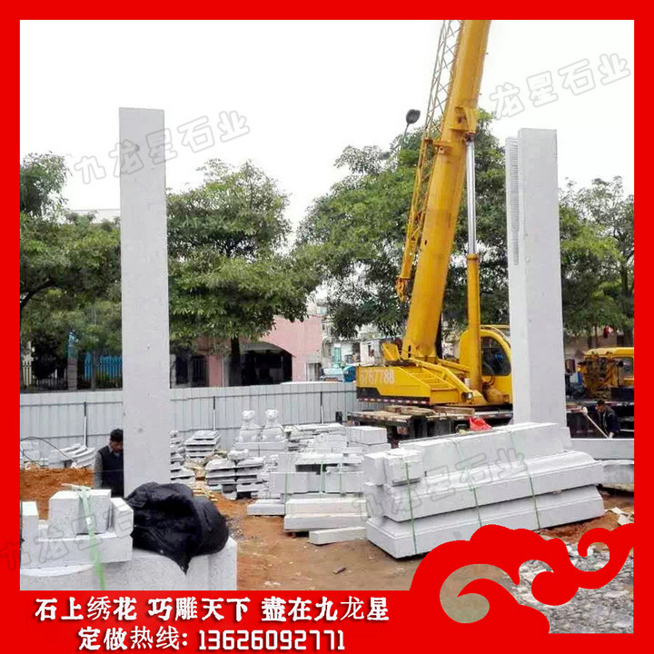 陵園石牌坊基礎(chǔ)結(jié)構(gòu)都是由立柱和橫梁搭建而成。演變過程中變化的是檐樓的結(jié)構(gòu)、立柱和橫梁的數(shù)量、樣式、雕工、畫工以及材料尺寸的差異,簡單來說都可以歸納成兩根立柱架起一根橫梁的排列組合結(jié)構(gòu),石雕牌坊與最常見的“門”形式相同,這也是門洞式建筑的特點。