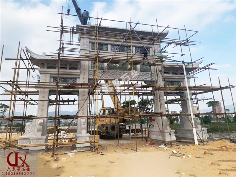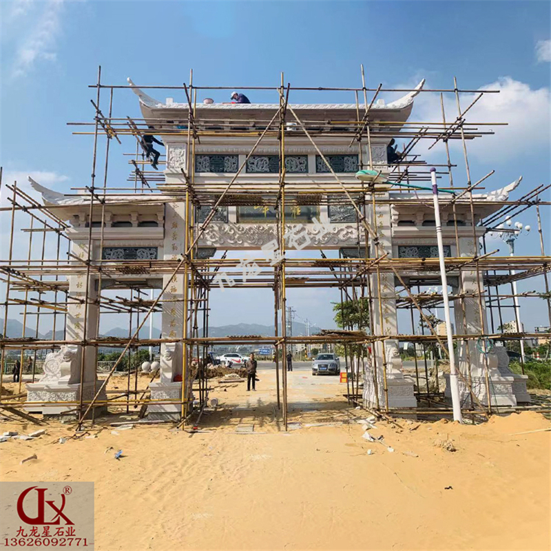 福州長(zhǎng)樂(lè)?村口石雕牌坊 三門(mén)石牌坊——福建九龍星石業(yè)發(fā)展有限公司案例。