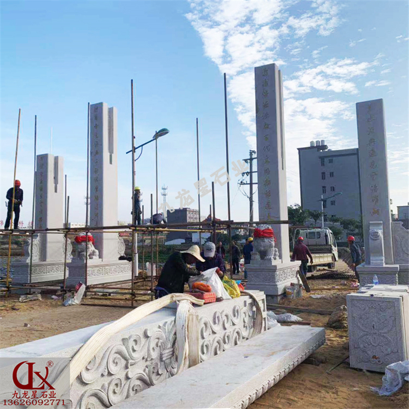 村口石雕牌坊沉穩(wěn)優(yōu)雅,大氣巍峨的視覺(jué)效果,讓人覺(jué)得這個(gè)鄉(xiāng)村的人文藝術(shù),人群的素質(zhì)都是比其他鄉(xiāng)村高的。除了按照一些當(dāng)?shù)氐娘L(fēng)俗來(lái)設(shè)計(jì)村口石雕牌坊,事實(shí)上,三門(mén)石牌坊對(duì)選材的要求非常高,一般會(huì)選擇用青石或者花崗巖來(lái)加工,如果為了有更長(zhǎng)的擺放壽命,盡可能在石牌坊選材的時(shí)候采用大型石頭來(lái)進(jìn)行加工。