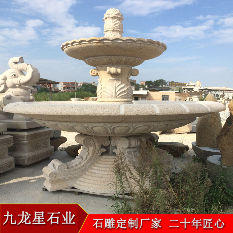 石雕噴泉水景一般在一些景區(qū)或者廣場、房地產(chǎn)門口經(jīng)??梢?。隨著石雕噴泉水景的使用范圍越來越多,噴泉公司也就越來越多了。要問水缽噴泉廠家哪家好,就來九龍星石業(yè),20多年的雕刻工藝了,我司的合作伙伴有綠城集團(tuán)、恒大集團(tuán)等地產(chǎn)公司。