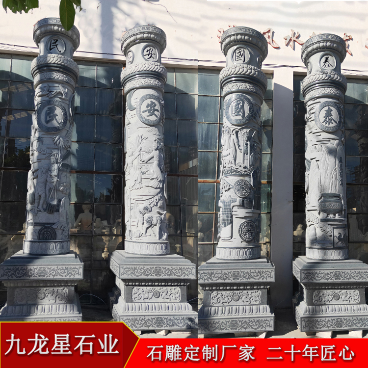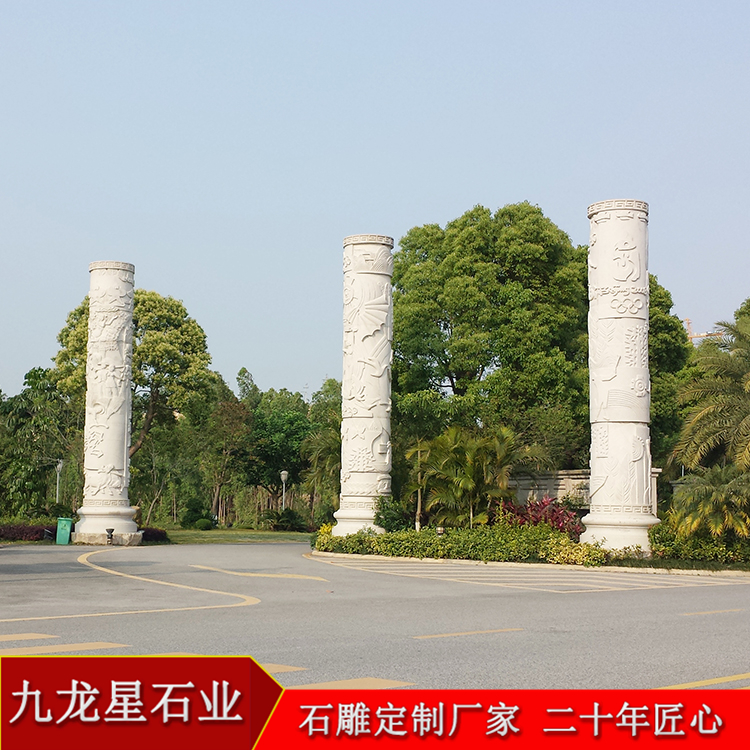 大理石石雕圓柱加工 浮雕文化柱廠家——各種花樣款式很多,歡迎致電九龍星咨詢。