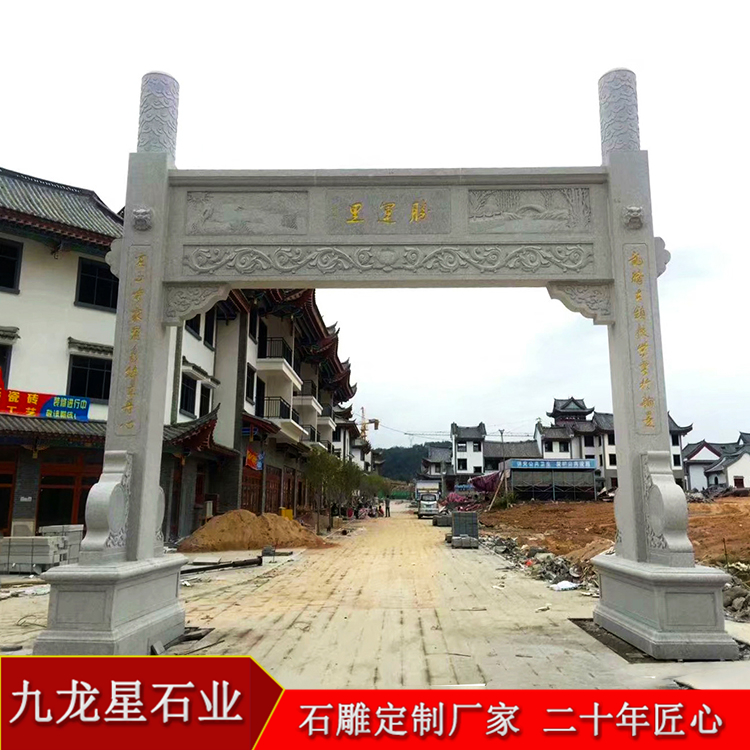 常見的石牌坊圖片大全款式很多,不同場合設(shè)計的款式也不同,九龍星石業(yè)可根據(jù)需求設(shè)計效果圖,二十年工藝,品質(zhì)保證。