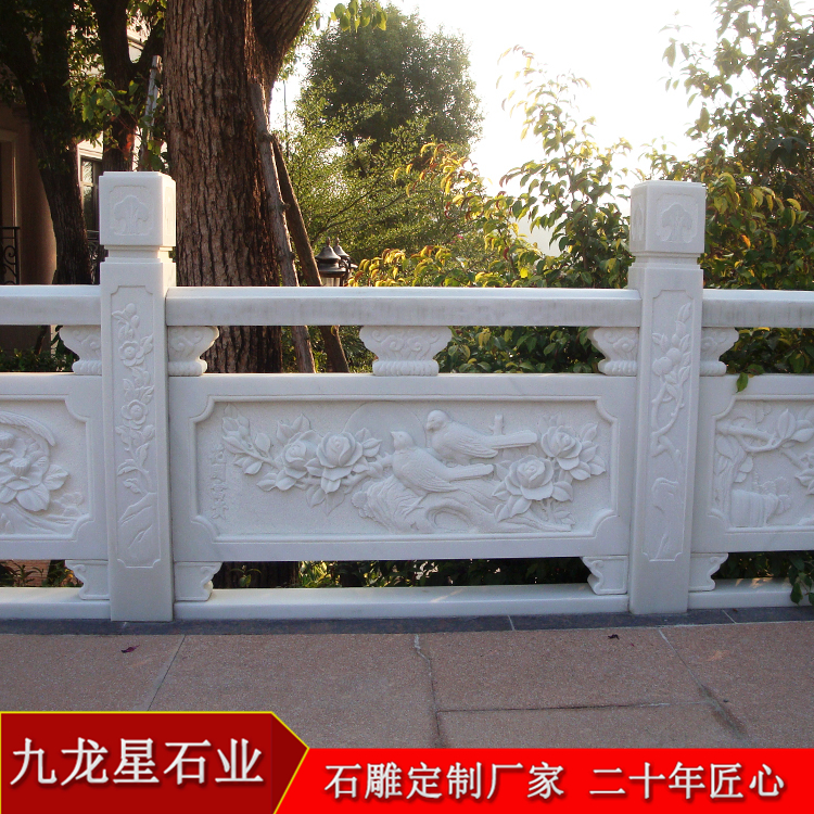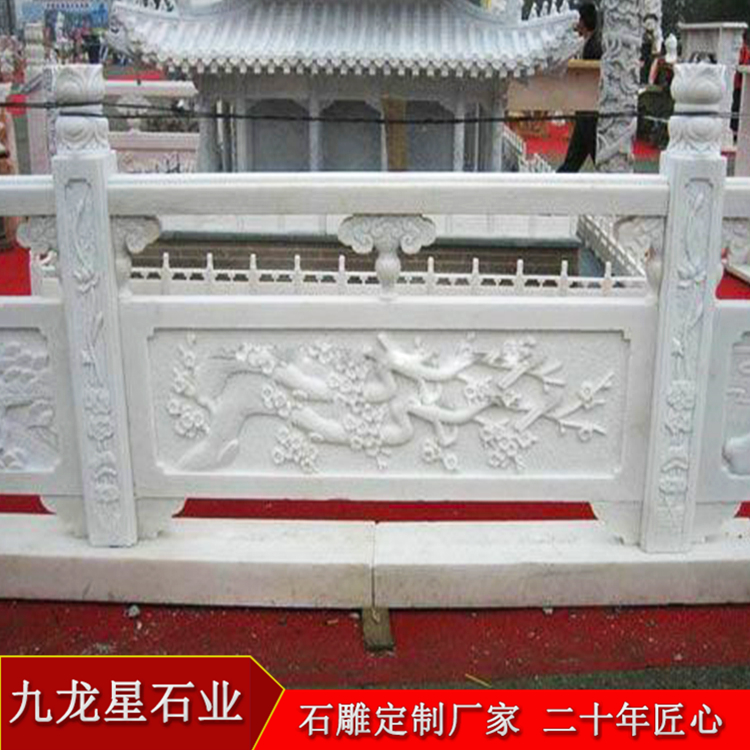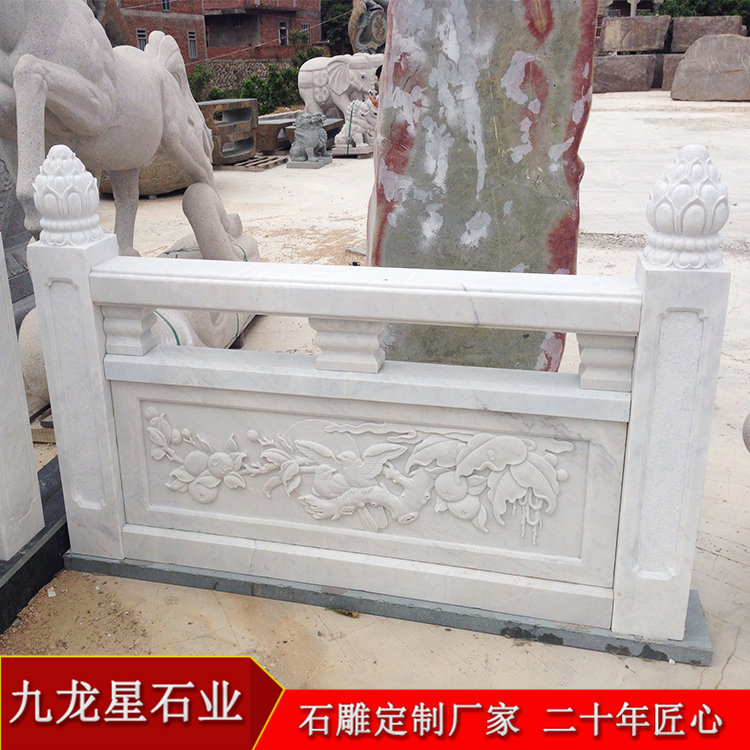 石雕欄桿的材質(zhì)選擇要順其自然,在不破壞旅游景區(qū)和景觀的前提下選擇石材較合適,因?yàn)闈h白玉的顏色是白色,使人心情愉快,所以漢白玉石雕欄桿在高景區(qū)寺院等古建筑選用的它的還是比較多的。漢白玉欄桿多少錢(qián)一米?漢白玉欄桿屬于大理石石雕欄桿,石雕欄桿價(jià)格是多樣化的。