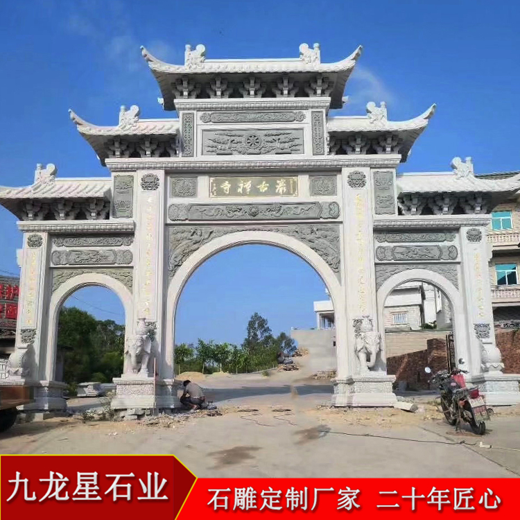 一座農(nóng)村村口牌坊要多少錢?牌坊常見樣式主要有三種,一種是木牌樓,第二種是琉璃牌樓,三是石雕牌坊,是指用石頭雕刻制作而成的牌坊,這種農(nóng)村村口牌坊的保存時間長,不易,易保存,也是比較常見、使用比較多的一種。