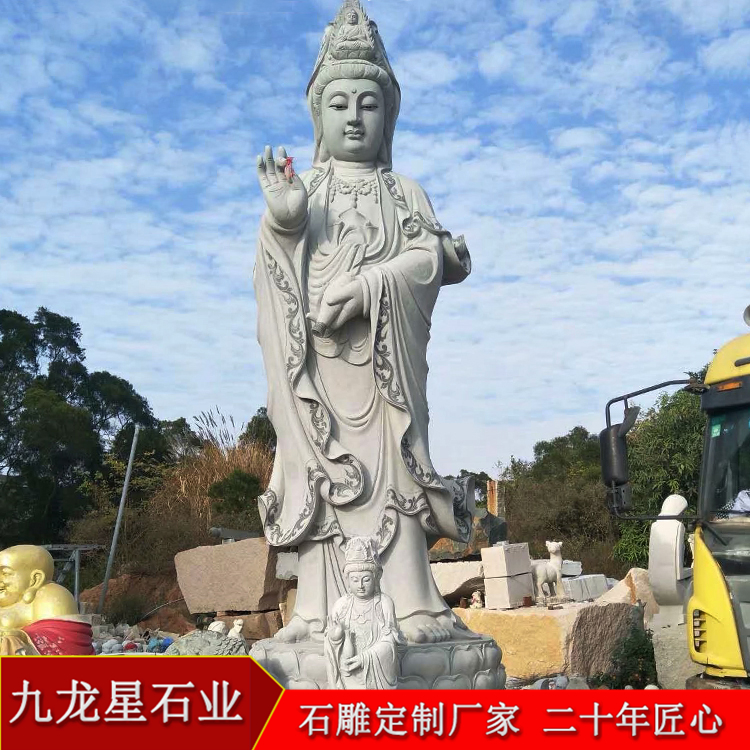 同時要想制作一尊好的石雕觀音像出來,那就就必須控制好源頭。原材料是基石 ,是一尊質(zhì)量好的觀音像的有效保證。用以制作石雕觀音像的石料外觀顏色足夠均 勻的話,制作出來的觀音菩薩像也會更加的美觀。比較常見的材質(zhì)是花崗巖、漢白玉 。