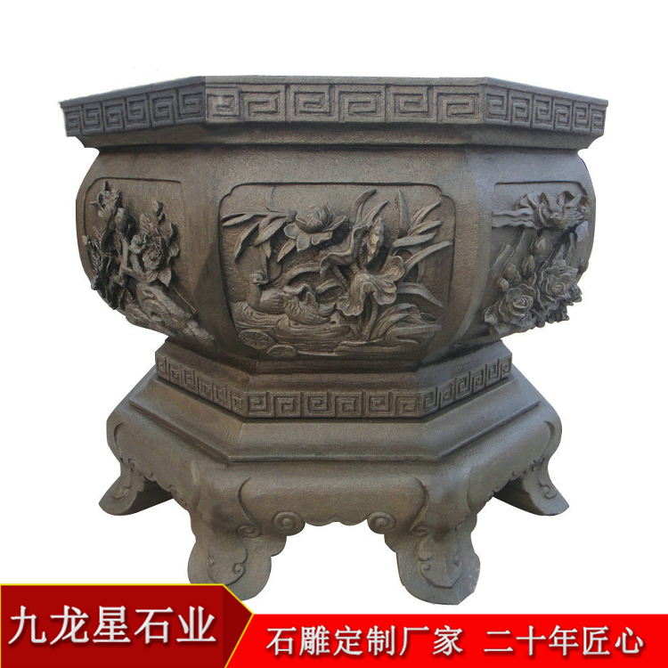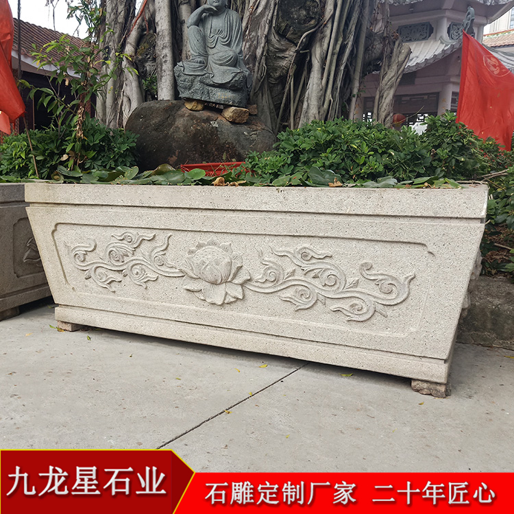 在現(xiàn)代生活中,石雕花盆多被用于城市的美化環(huán)境中,在城市的景觀中被加以裝飾,它不僅僅只是一個(gè)花缽,即可以成為建筑物點(diǎn)綴品,又可以成為獨(dú)立的觀賞物,還可以豐富整個(gè)城市居民的精神層次,從另一方面充分展示一個(gè)城市的精神面貌。