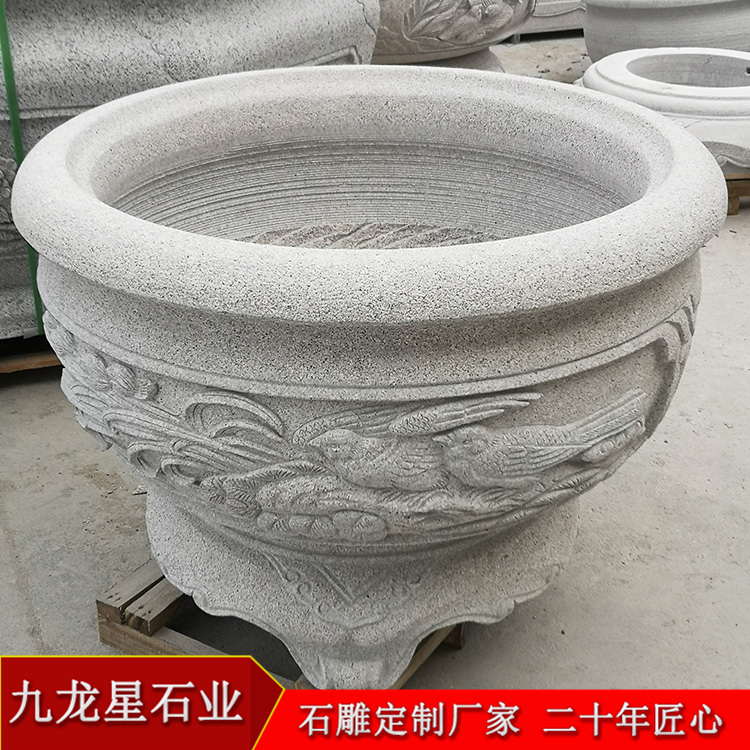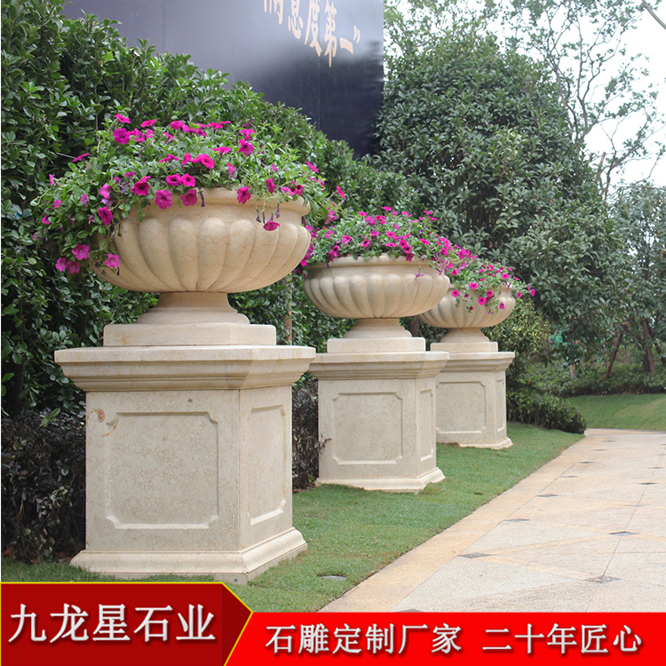 園林石雕花盆圖片以其優(yōu)美的雕刻技術(shù)、大氣的形態(tài)、長久的使用壽命深受大家的喜歡。在街頭,我們可以看到三三兩兩的花缽,一字排開,花缽內(nèi),各色的時(shí)令花卉栽種其間,通過定期地澆水、施肥、養(yǎng)護(hù)后,便收到了不錯(cuò)的景觀效果。