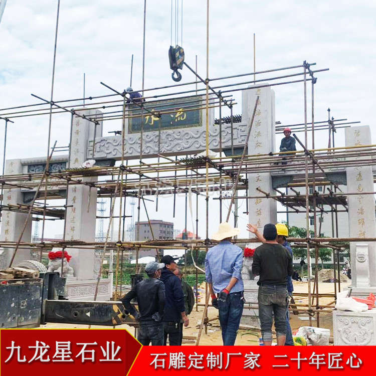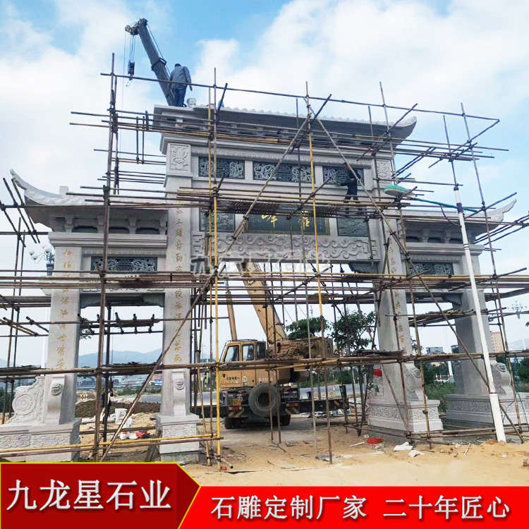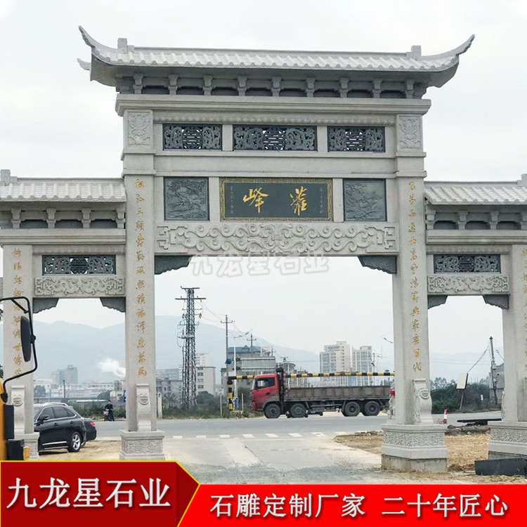 村口三門石雕牌坊?福州長(zhǎng)樂(lè)——福建九龍星石業(yè)發(fā)展公司。