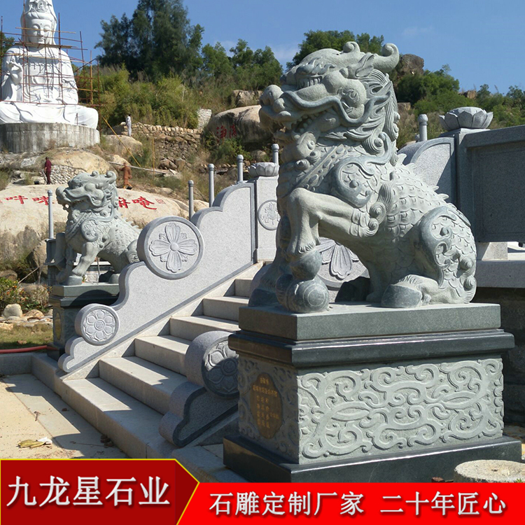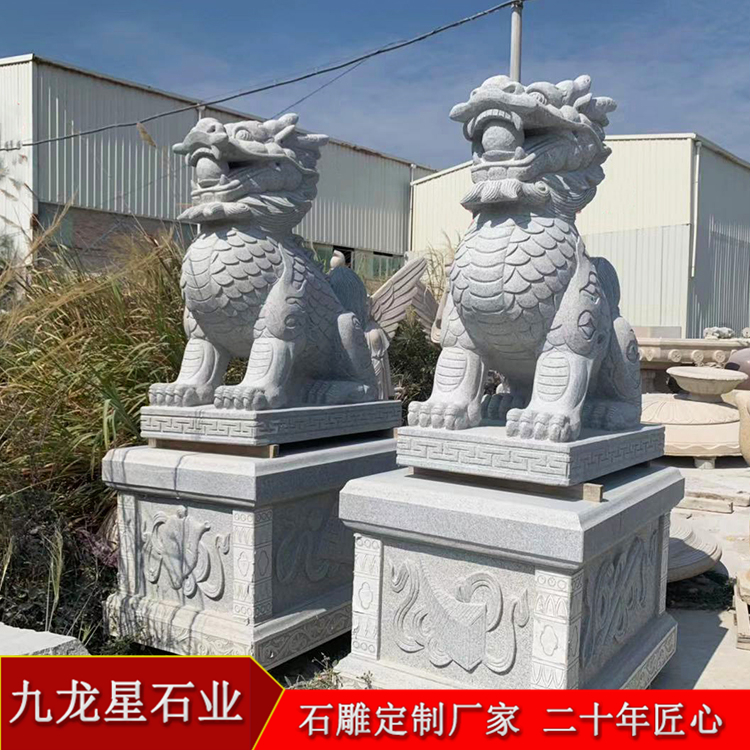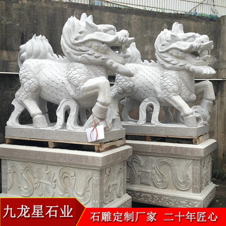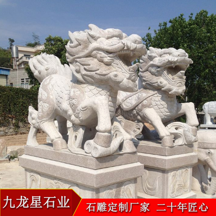 企業(yè)工廠門口石雕麒麟可以是單純的擺件,也可以是值得大家欣賞的一處景觀。生活中 已經(jīng)越來越多的石麒麟出現(xiàn)了,庭院門口、工廠、銀行、大廈、樓盤、酒店等等,一 對對大氣的石麒麟屹立在兩旁。