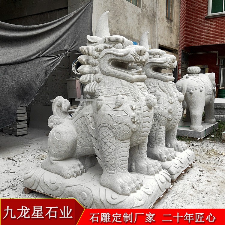 石雕獨(dú)角獸 動(dòng)物雕塑 大型門口擺件 獅子貔貅麒麟大象四大神獸