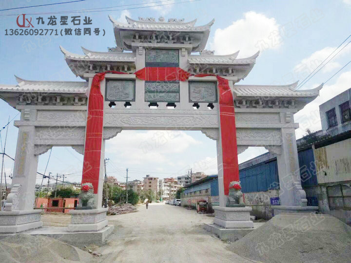 <span background-color:#ffffff;font-size:16px;"="">大型石雕牌坊的制作工藝精湛,石雕牌坊公司雕刻圖案精美,可以深刻的反映出人們的精神面貌。比如,描繪美好藍(lán)圖、展示自我風(fēng)采、祈求平安富貴等等,這些都可以在村門石牌坊雕刻中展現(xiàn)出來。建在村莊入口處的村門石牌坊,展現(xiàn)的是一種內(nèi)心強(qiáng)有力的自豪感,是謳歌時(shí)代,對國家未來的發(fā)展,充滿信心的美好憧憬。村門魚臺石牌坊就如同宗祠-樣,具有凝聚人心的重要作用,而且激發(fā)著村民積極向上。