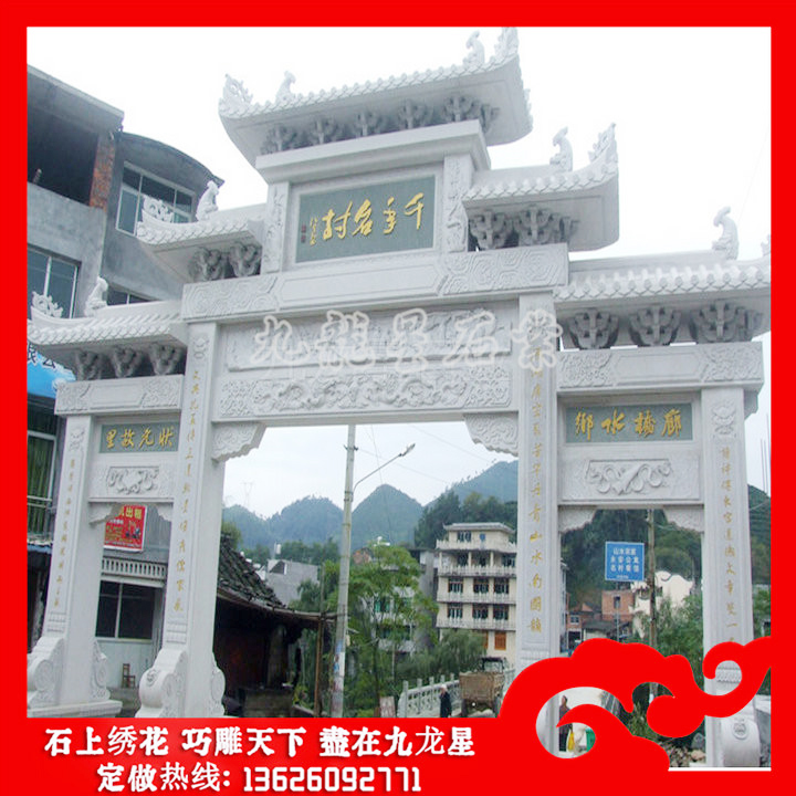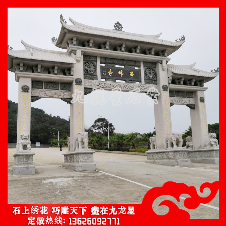 石雕山門牌坊(寺院山門牌坊 石雕山門價格分析)——九龍星石業(yè),二十年石雕牌坊廠家,工藝精湛,自帶礦山!