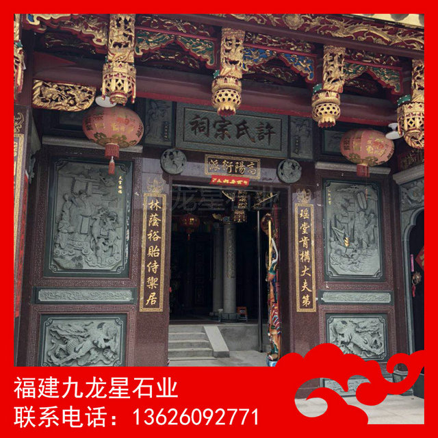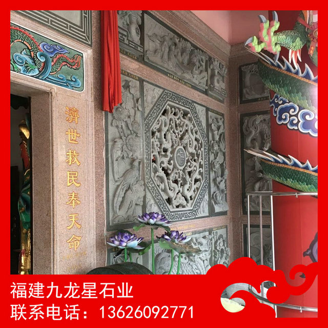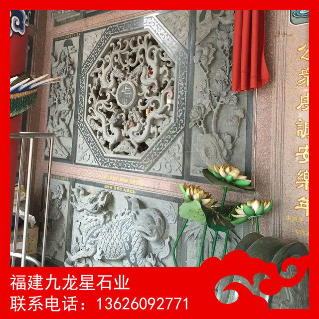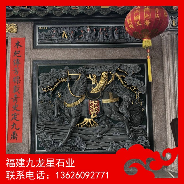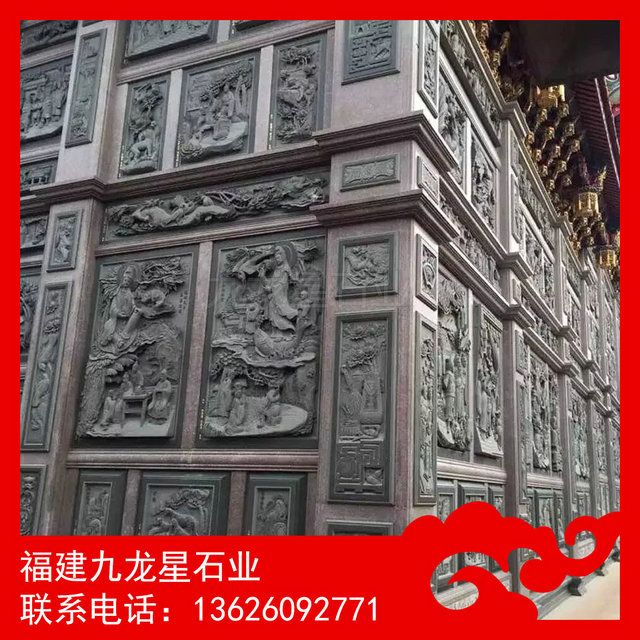 寺廟浮雕 祠堂浮雕 祖厝浮雕 宗祠浮雕墻——現(xiàn)在很多寺院寺廟祠堂都普遍會采用浮雕來裝飾外墻,佛教寺院浮雕墻所雕刻的內容涵蓋了許多方面,有的是寺院的歷史沿革,有的是諸佛菩薩的經典典故,有的則是寺院供奉主佛、菩薩的一些人物故事,這些所稱的故事中必然是在佛經中有明確記載的。這種浮雕墻一般會采用青石或芝麻黑花崗巖石料,是因為這些石材的顏色相對深一些。在雕刻較多的人物形象時,青石浮雕可以清晰地體現(xiàn)出來,包括人物的每一個動作,而這是其他石材沒辦法達到的效果。