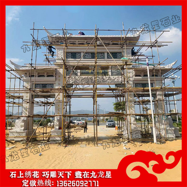 石牌坊(新農(nóng)村石雕門(mén)樓 村口石頭牌坊價(jià)格)——九龍星石業(yè)。