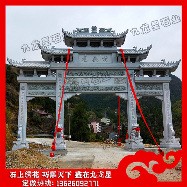 新農(nóng)村石雕門(mén)樓的種類(lèi)有一門(mén)到五門(mén)按照的順序來(lái)排,村口石頭牌坊價(jià)格是高到低的,當(dāng)然還有一些大型石牌坊,其價(jià)格要比五門(mén)石牌坊高的多。每一種還可以按照有無(wú)樓頂分為沖天式和有樓式,有樓式石牌坊還可以按樓數(shù)的數(shù)量區(qū)分,對(duì)應(yīng)的石頭牌坊價(jià)格處于從低到高的走勢(shì)。