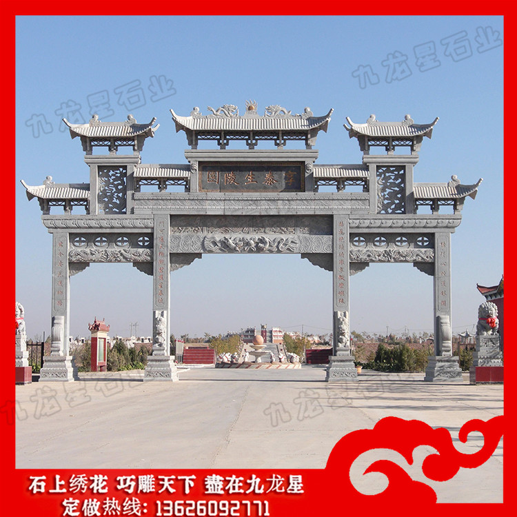 石雕石牌樓根據(jù)材料的不同,工藝的不同,加工的作品可以擺放到非常多的地方,比如村牌樓、寺廟寺院石雕牌坊,陵園墳墓的石雕牌坊,祖屋祠堂的石雕牌坊等等,因為品種非常多,所以在制作的過程中也有非常多的變化。從建一個村牌樓多少錢方面來看,好的石牌坊廠家在生產(chǎn)方面會追求產(chǎn)品的性價比,無論是從產(chǎn)品的選材,設計還是其它方面應該追求的效果,都應該合理的控制村口牌坊價格。在保證石雕石牌樓的質(zhì)量的情況下應該選擇價位適中的材料,在加工工藝方面應該選擇成本一般的工藝,為客戶帶來更多的實惠。