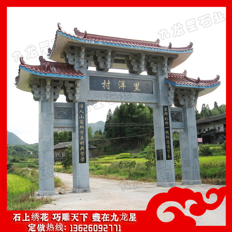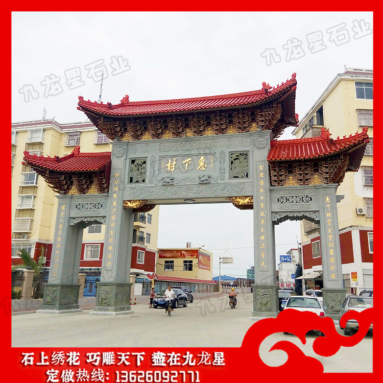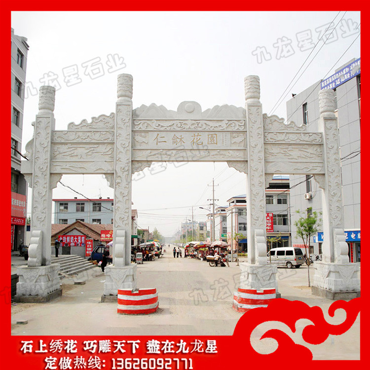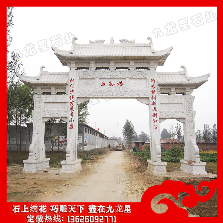 石牌坊(石雕石牌樓 建一個村牌樓多少錢)——九龍星石業(yè),二十年石雕牌坊廠家。