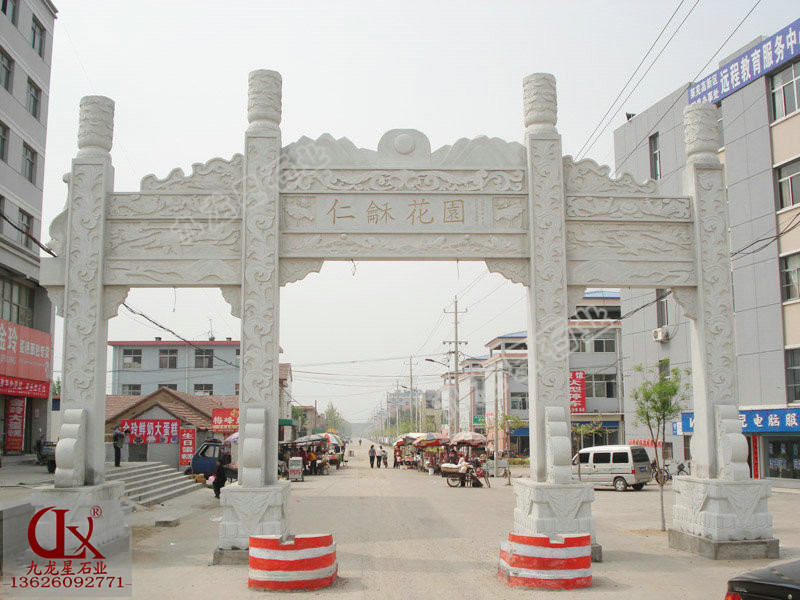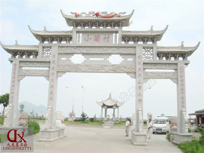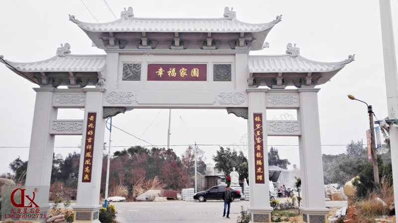 石雕牌坊(農(nóng)村石牌樓多少錢 村口牌坊設(shè)計圖片)——九龍星石業(yè),工藝精湛。
