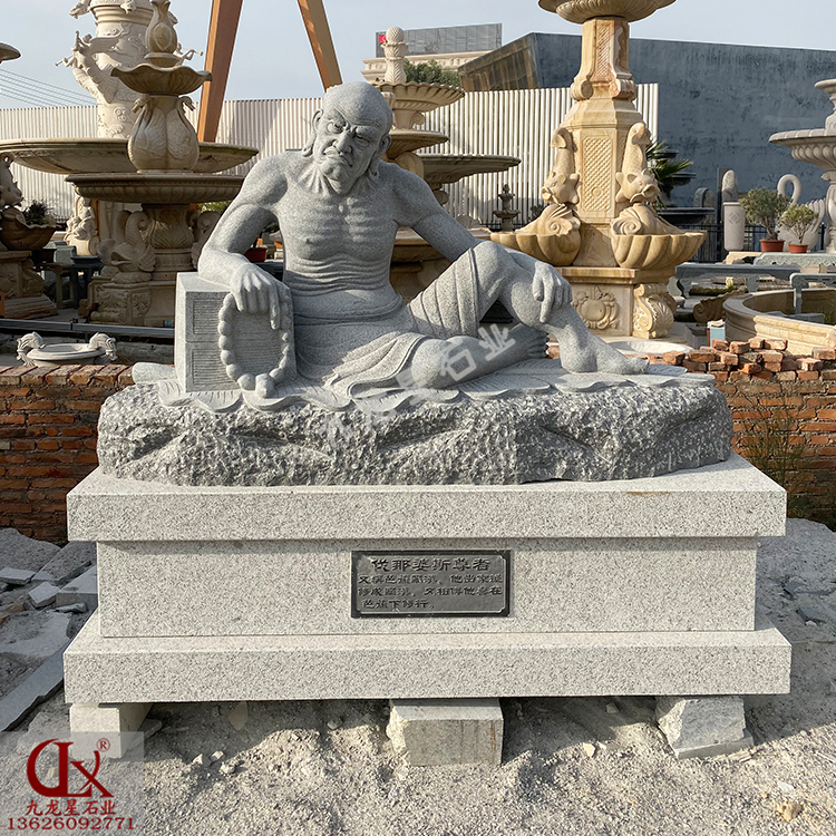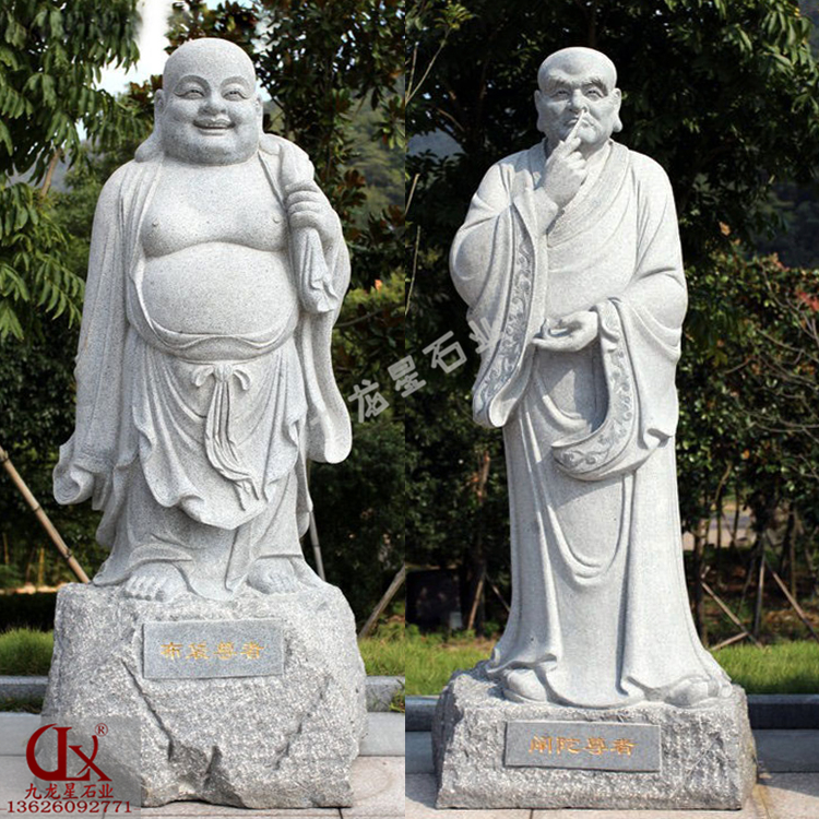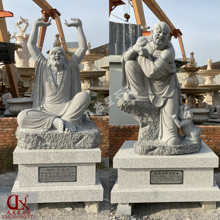 中國(guó)佛教雕塑中最有中國(guó)特色的,除了女人的石雕觀音,便是男性的石雕羅漢。石雕雕刻18羅漢像即阿羅漢,是小乘教中修行的最高境地,功行滿意即得阿羅漢果。修阿羅漢果有必要出家,否則就會(huì)有生命的危險(xiǎn)。出家為僧就有必要剃發(fā),故凡稱羅漢者,盡為光頭。