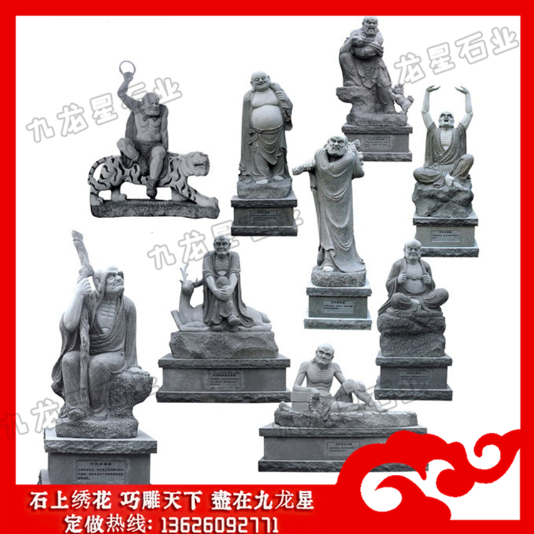 石雕雕刻十八羅漢 十八羅漢佛像雕塑廠家——九龍星石業(yè),自帶礦山,二十年雕刻工藝。