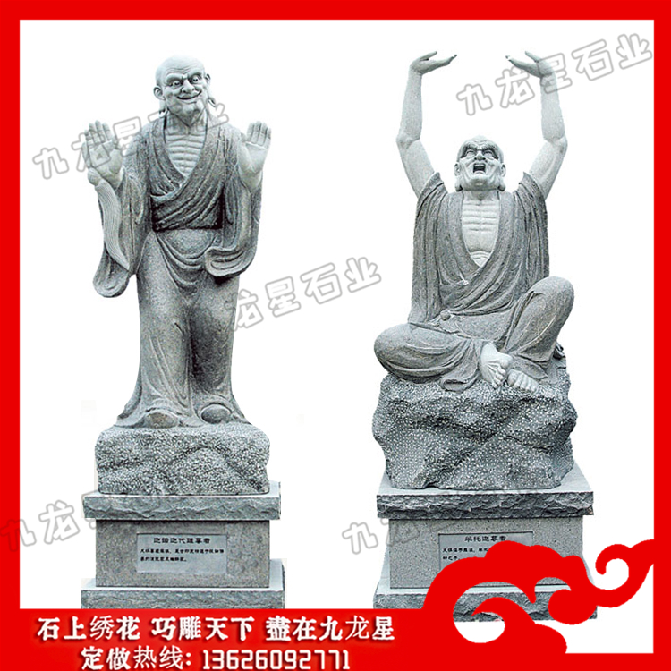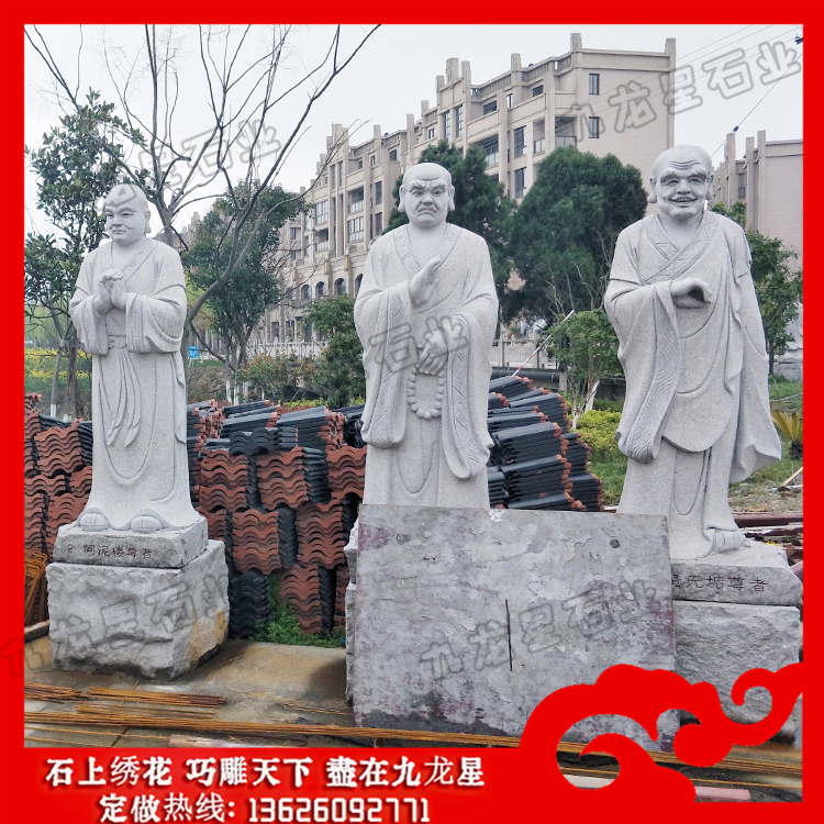 石雕雕刻十八羅漢采用天然的石材,工藝精湛,因此如果又不放心的朋友可以直接到場(chǎng)參觀咨詢。石雕十八羅漢造像每一尊羅漢象征的意義不一樣。相傳石雕十八羅漢是如來(lái)佛祖派到民間來(lái)傳播佛法,讓人們?cè)诜鹜訙缍群筮€有機(jī)會(huì)接觸佛法,在世間石雕十八羅漢造像與人相似,不斷的貼近人民的形象,使人們覺(jué)得有熟悉感,因此對(duì)其的信仰可以說(shuō)也是普遍。信眾擺放家里的整套十八羅漢佛像雕塑擺件是比較小尊的,選材以花崗巖白麻石這類白色的亮系石材為主,而青色的石材比較不適合家居擺放佛像,石雕雕刻十八羅漢一般是寺院選擇比較多的。