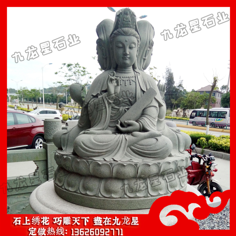 寺院石雕三面觀音圖片大全 三面石雕觀音佛像廠