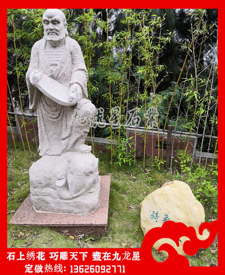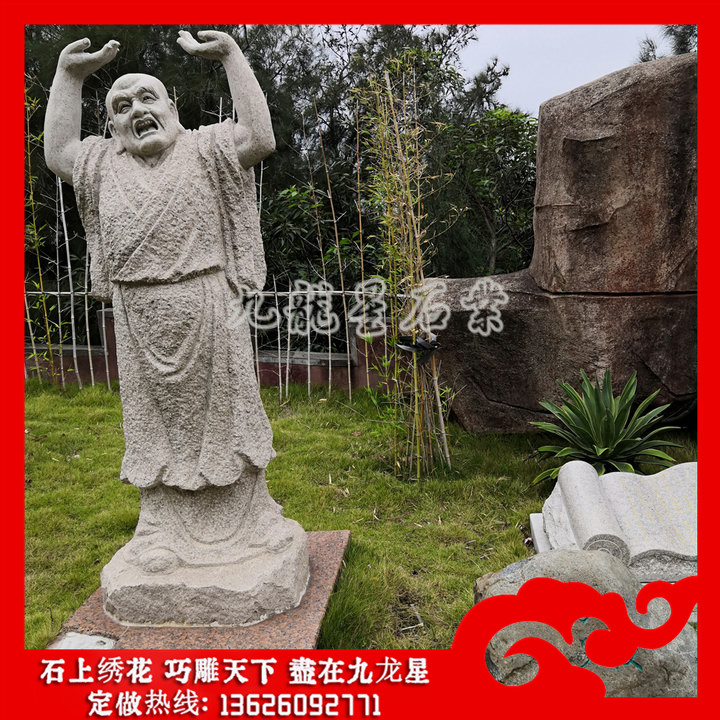 石雕十八羅漢每一尊羅漢象征的意義不一樣。相傳石雕十八羅漢是如來(lái)佛祖派到民間來(lái)傳播佛法,讓人們?cè)诜鹜訙缍群筮€有機(jī)會(huì)接觸佛法,在世間石雕十八羅漢造像與人相似,不斷的貼近人民的形象,使人們覺得有熟悉感,因此對(duì)其的信仰可以說(shuō)也是普遍。信眾擺放家里的整套十八羅漢石雕擺件是比較小尊的,選材以花崗巖白麻石這類白色的亮系石材為主,而青色的石材比較不適合家居擺放佛像,一般是寺院選擇比較多,大理石漢白玉因?yàn)闈h白玉潔白的特性,在雕刻石雕十八羅漢神態(tài)形態(tài)視覺效果比較差,沒有花崗巖十八羅漢雕像整體的雕刻線條明顯,辨識(shí)度也比較低。因此家里擺放18羅漢造像擺件不建議選擇青石、漢白玉這兩種石材。