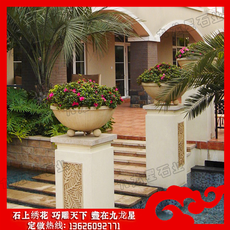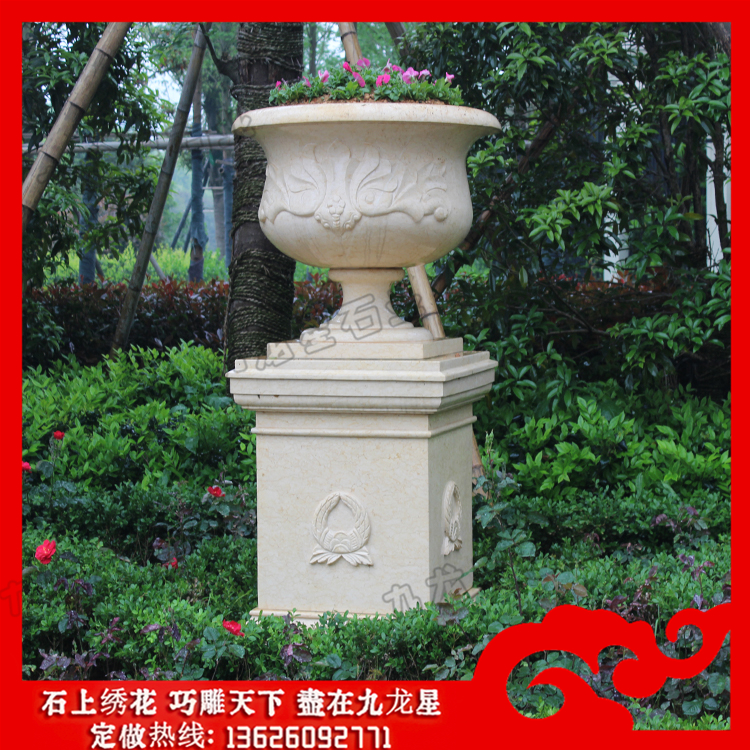 石雕花缽(大理石花缽批發(fā) 大型石制花缽加工)——九龍星石業(yè)。