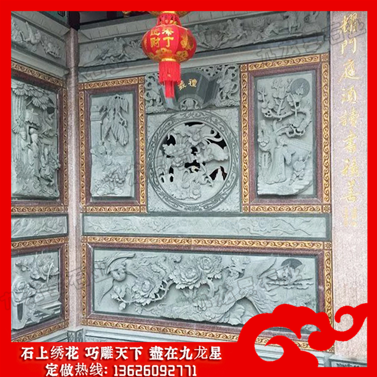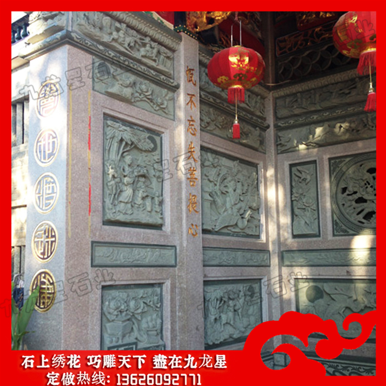 石雕壁畫(寺院門頭石雕壁畫 青石浮雕壁畫價格)——九龍星石業(yè)。
