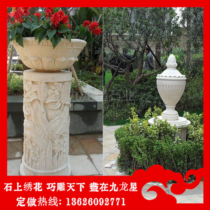 石雕花缽是用來種植植物的器皿,體積可大可小,可移動。石材花盆花缽一般為口大底小的倒圓臺或倒棱臺形狀,質(zhì)地多為砂巖、泥、瓷、塑料及木制品,現(xiàn)在以美觀、耐腐蝕、吸水性強的石雕花缽較為常用,鐵藝花缽相對少見。