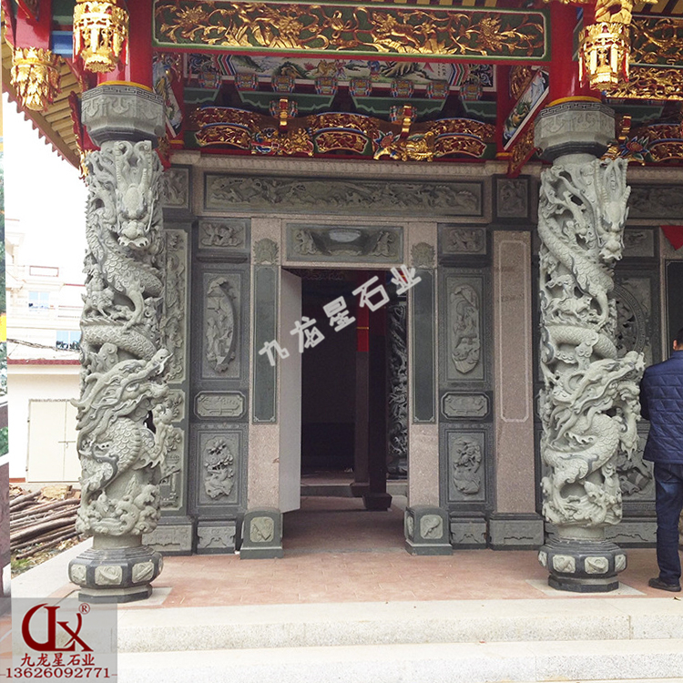 家族祠堂青石龍柱 寺廟龍鳳柱 蟠龍石雕柱圖樣