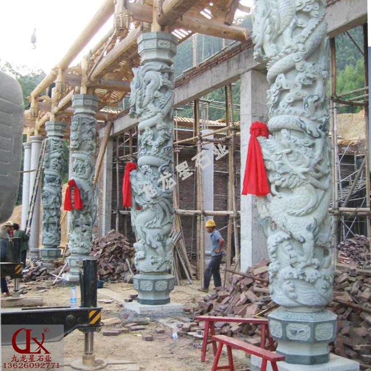 城市廣場(chǎng)石雕文化柱 花崗巖浮雕龍柱雕琢——九龍星石業(yè)。