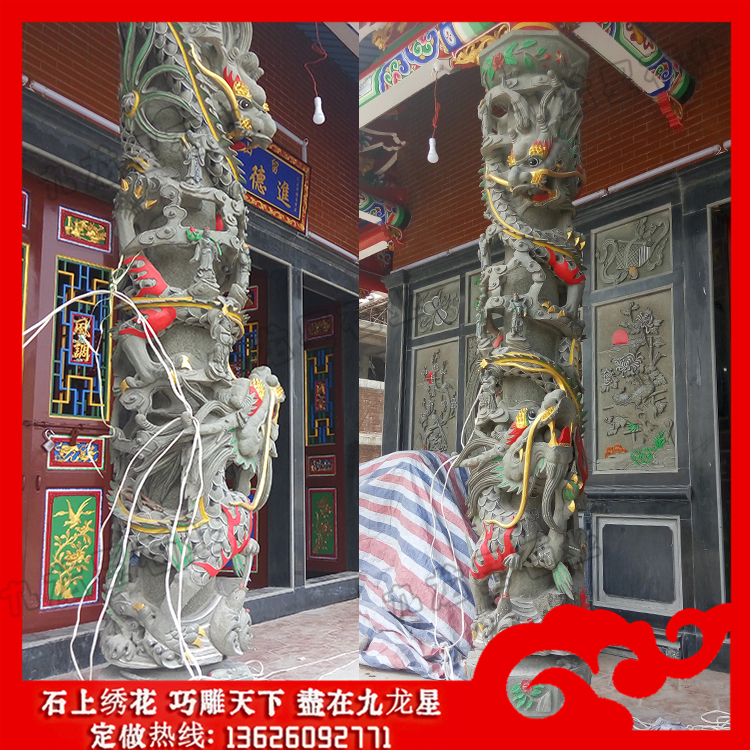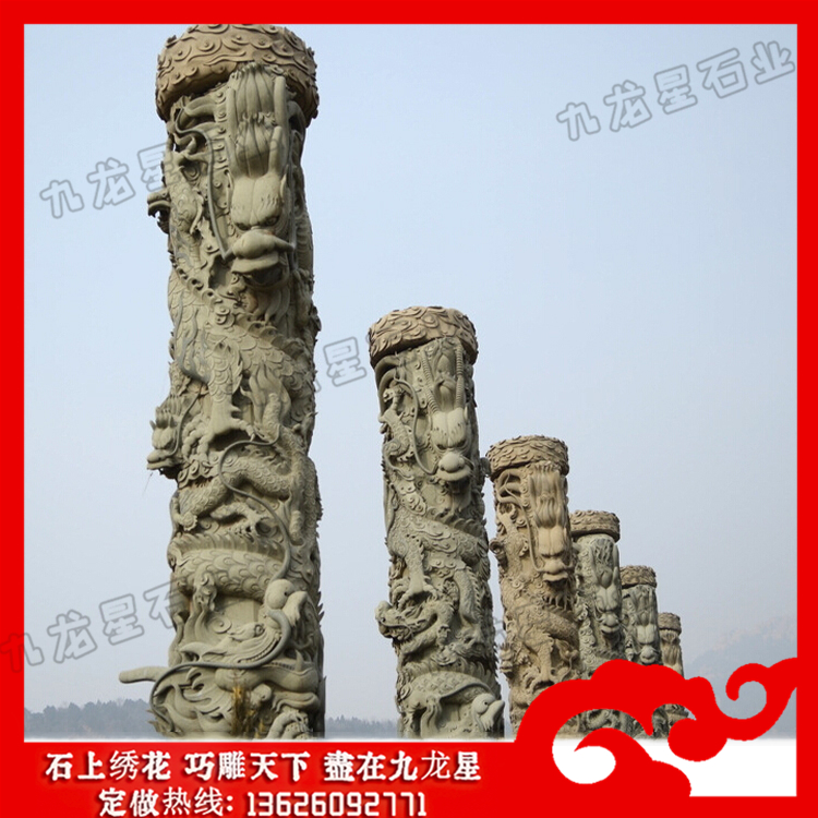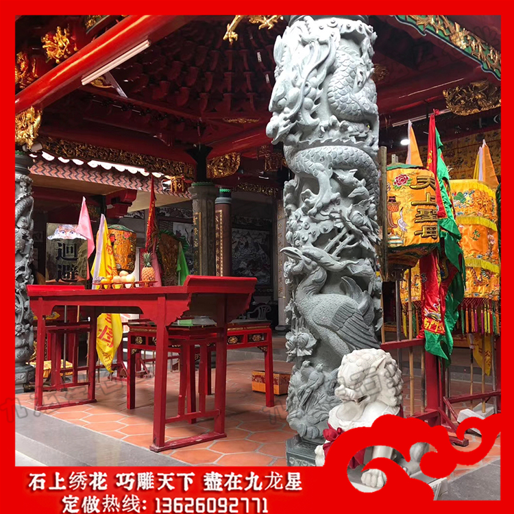 石雕龍柱(祠堂石龍柱雕刻 龍柱石雕多少錢一根)——九龍星石業(yè)。