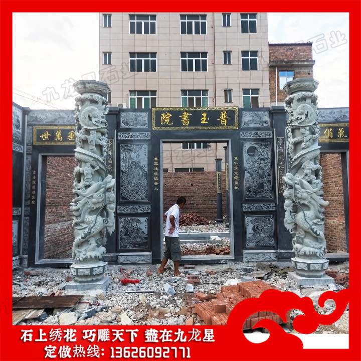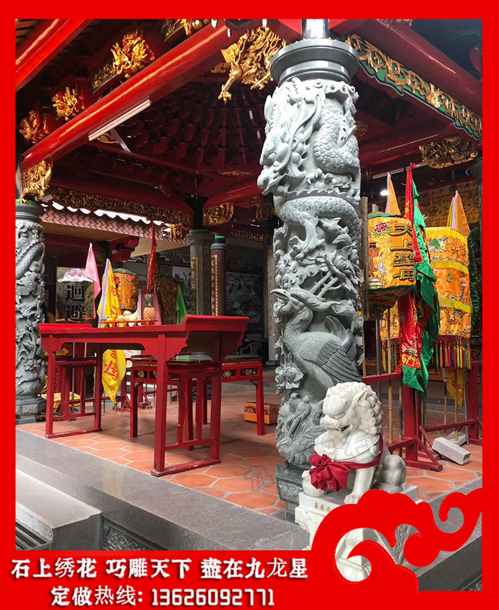 石雕龍柱廠家的龍身環(huán)繞柱身一圈,龍尾在上,龍頭在下,取其從天而降之氣勢(shì),龍頭上昂,龍爪握珠。石雕龍柱一柱一龍又可分:A.柱身純雕龍形,其間最多配以白云。B.柱身礎(chǔ)亦搭配了各種的水族圖案、雕刻精巧,但藝術(shù)水平卻較低落。臺(tái)灣廟龍柱的發(fā)展,除了其形式由簡(jiǎn)樸而繁瑣外;在運(yùn)用上,也演變到毫無(wú)規(guī)制的泛濫。許多廟宇更以龍柱之多寡以取勝,而不考慮其空間的安排及視覺上審美的效果,徒為夸示炫耀之目的,喪失了龍柱在廟宇中之意義和價(jià)值。哪里有石雕龍柱廠家,歡迎致電詳詢!