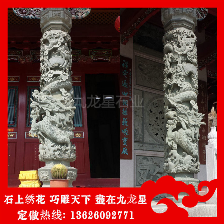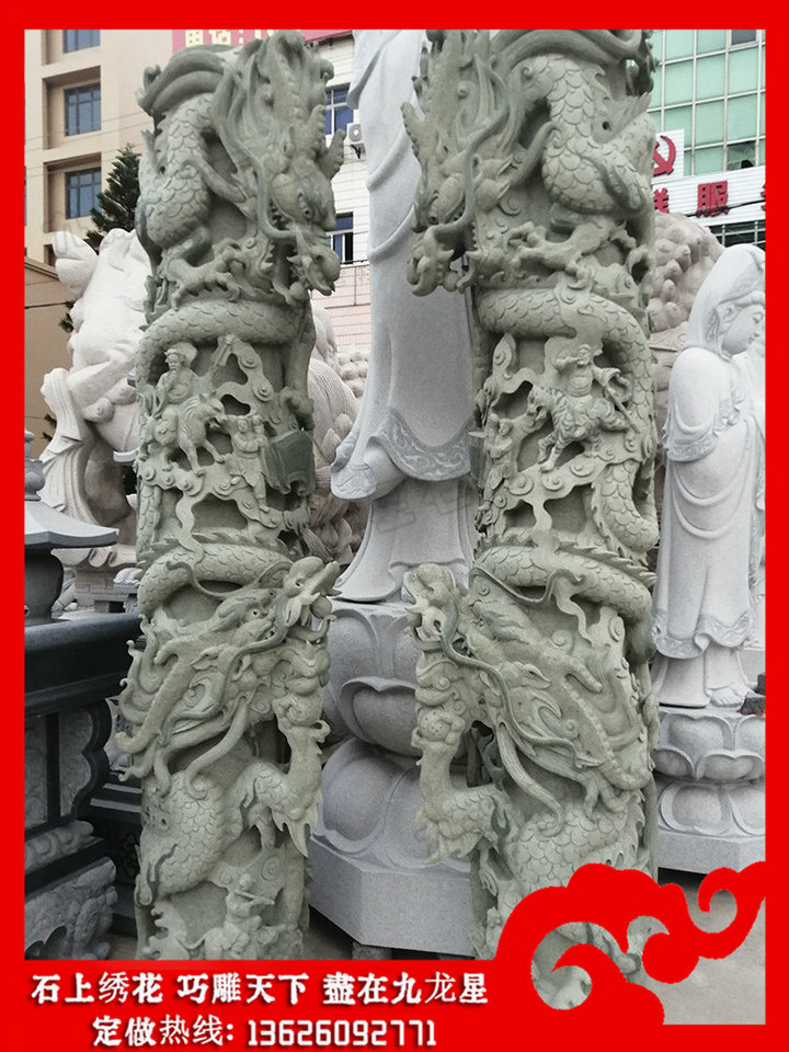 石雕龍柱(青石石雕盤龍柱 石雕龍柱雕刻樣式)——九龍星石業(yè),二十年石雕廠家。