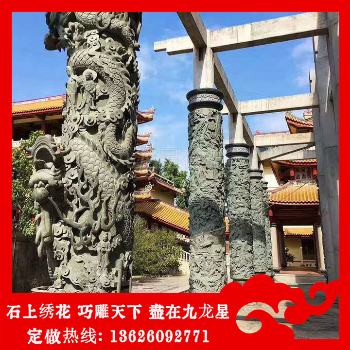青石石雕盤龍柱是一種龍形浮雕圓柱,通身塑有纏柱云龍,栩栩如生,立在廣場(chǎng)路邊成為景觀和地標(biāo)。石雕龍柱是中華民族的傳統(tǒng)建筑物,有著悠久的歷史和古老的傳說。石雕龍柱雕刻樣式可以分為圓形,正方形,八棱形等形狀。其中要數(shù)正方形成本,因?yàn)檎叫问贤耆梢栽谑徤厦孀龀鰜?,而無需再用人力加工。而圓形和菱形就不同了,這兩種造型要在正方形的基礎(chǔ)上座出來,無形中就增加了人工成本。因其龍浮雕造型的不同,可分為一龍一柱和雙龍一柱,甚至還有多龍一柱的造型,當(dāng)然龍浮雕越多,雕刻就越費(fèi)工時(shí),青石石雕盤龍柱價(jià)格也就會(huì)隨著上漲。