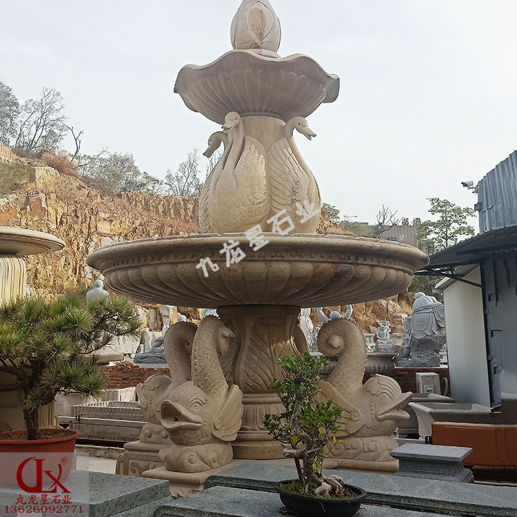景觀雕塑水缽是雕塑中比較常見(jiàn)的,在公園里,小區(qū)里,處處都可以看到石雕噴泉的身影,黃銹石石材水缽分為:動(dòng)物石雕噴泉,人物石雕噴泉等等,可以根據(jù)詳細(xì)的需求定制大小不同的石材水缽。雕刻與水缽相結(jié)合,可以更好的起到裝修的作用,獨(dú)自的噴泉不免顯得有些單一,搭配上精致的石雕雕塑就會(huì)顯得相得益彰。