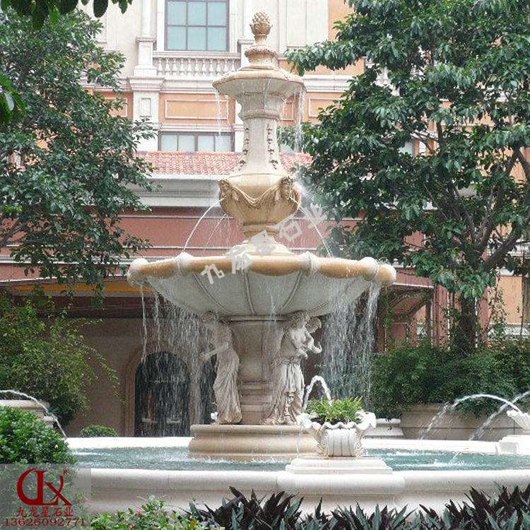 歐式水缽雕塑除了改善這些當(dāng)?shù)氐拿烙^,實(shí)際上,歐式水缽雕塑接近小型噴水池的用處,不斷的流水流動(dòng),讓周邊的水汽,空氣濕度都會(huì)高一些,也能讓周邊的植物長(zhǎng)得愈加茂盛,讓周?chē)臏囟纫灿幸恍┫陆?,所以夏天看到這樣的埃及米黃噴水池我們都會(huì)感受到一些清涼的感受。