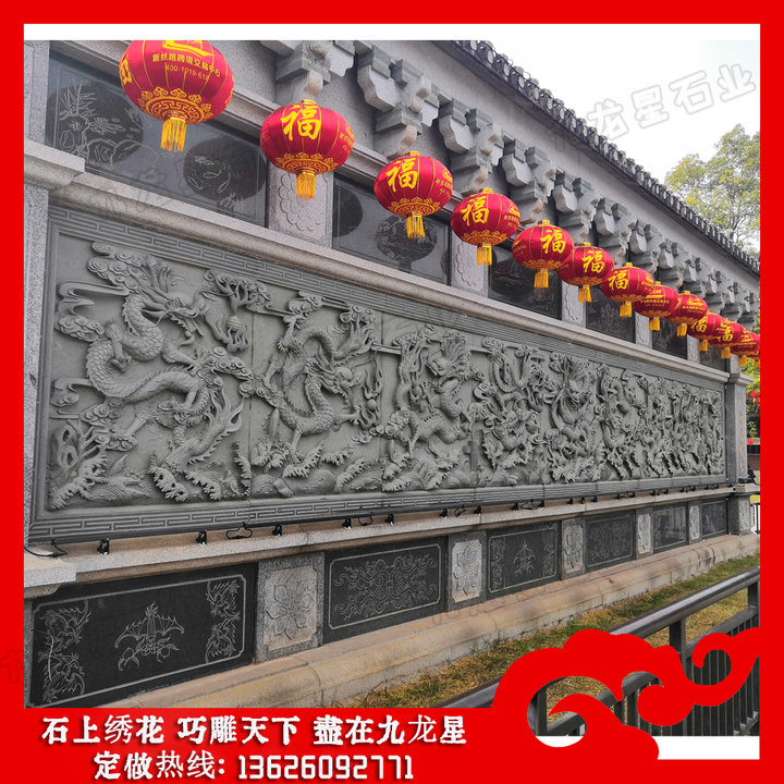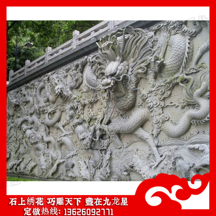 石雕九龍壁浮雕圖片 石雕影壁墻圖片大全