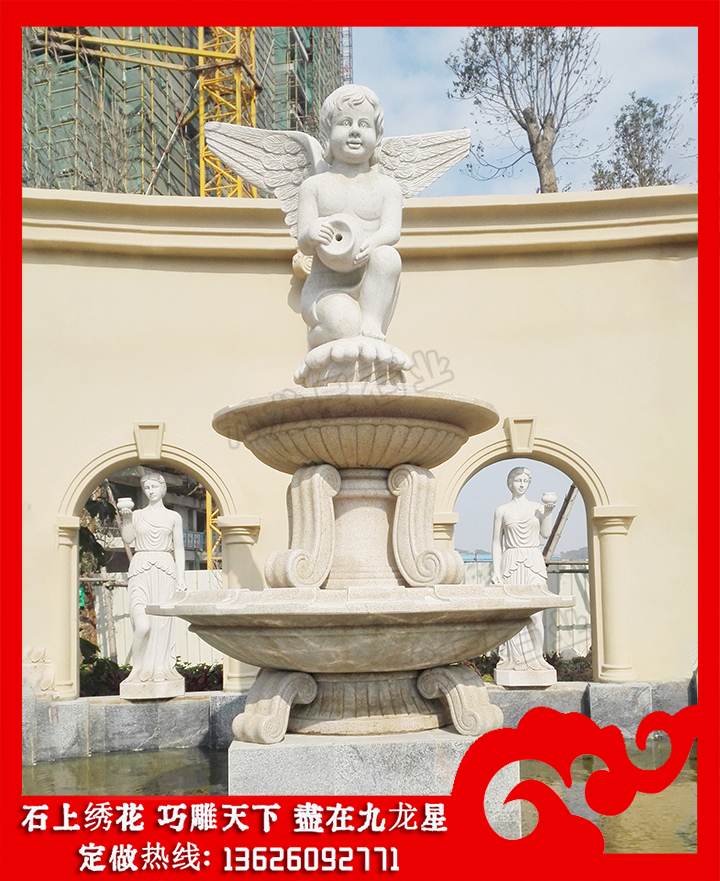 石雕噴泉(天使噴泉雕塑 歐式人物雕塑噴泉)——九龍星石業(yè)。