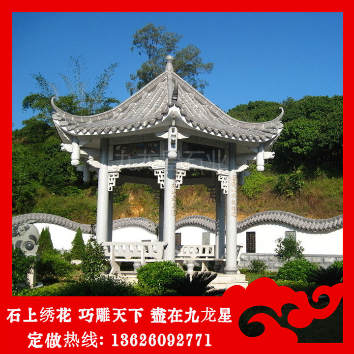 石雕涼亭就是用石頭雕刻而成的一種建筑物,主要是使用在花園、公園、自家庭院或者山上,讓人休息的一個(gè)建筑物,一般的大理石亭子圖片大全的造型都是由四根柱子支撐著屋頂建造的,而且這種石雕涼亭在古代就已經(jīng)存在,早期所使用的石材是木制的,直到后面慢慢變成了石雕,雖然石雕涼亭報(bào)價(jià)相對(duì)會(huì)比較高,但是使用年限比較久遠(yuǎn)的。