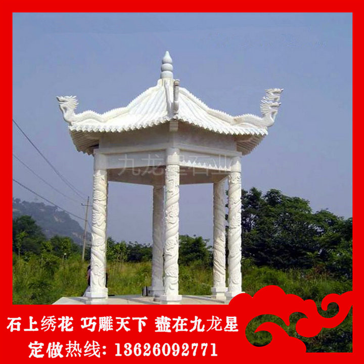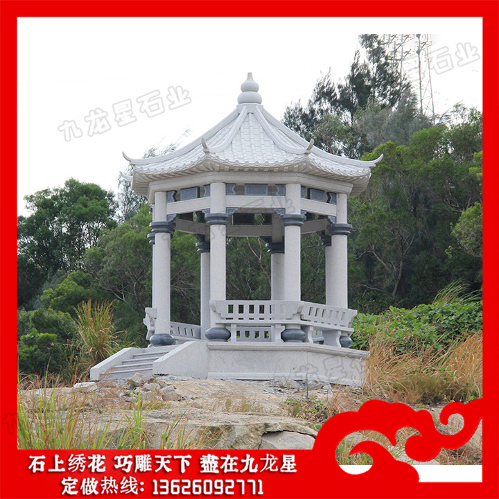 石雕亭子(石雕六角涼亭圖片 庭院石涼亭設(shè)計(jì))——九龍星石業(yè)。
