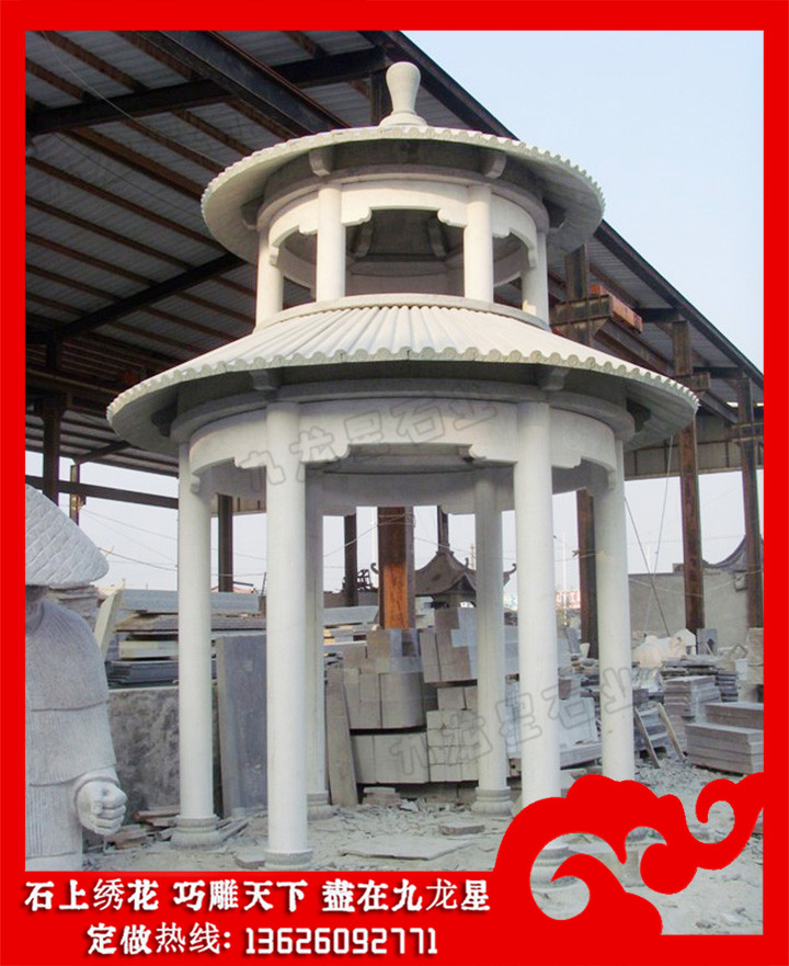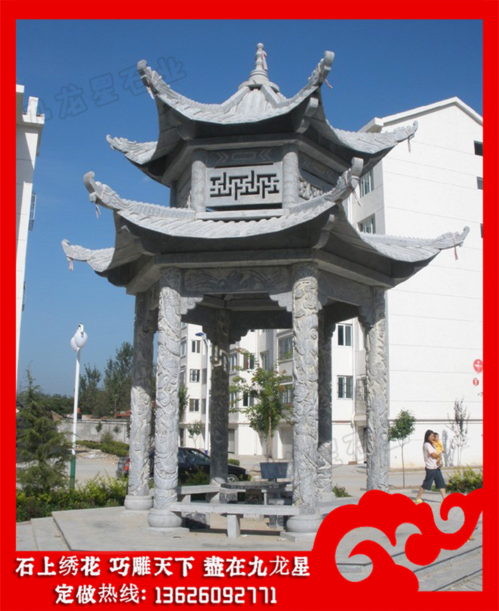 石材亭子(雙層石頭涼亭樣式 古建雙層六角涼亭石雕)——九龍星石業(yè),廠家直銷。