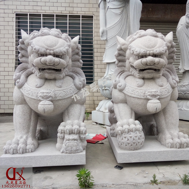 看門獅子 大型擺放石材雕刻品石雕獅子圖片——九龍星石業(yè)。