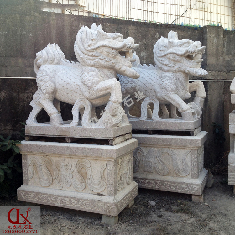 石雕麒麟是用優(yōu)質(zhì)青石、漢白玉、花崗巖、大理石等石材玉料雕刻而成的石雕麒麟。麒麟是古代的仁獸,集龍頭、鹿角、獅眼、虎背、熊腰、蛇鱗、馬蹄、豬尾于一身,乃吉祥之寶,從古到今都是公堂上的裝飾,以振官威之用,也是權(quán)貴的象征。