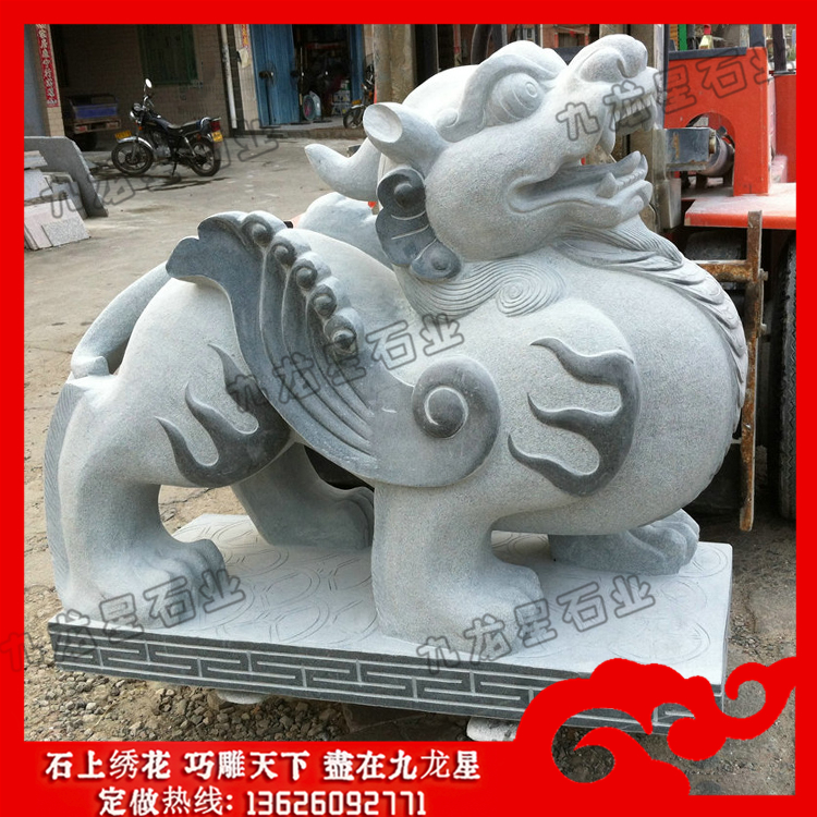 石雕石貔貅圖片大全不僅僅是祥瑞的象征,瑞獸文化還反映出中華民族的大融合,是中華民族團(tuán)結(jié)統(tǒng)一的象征。我國民間長久寄寓傳頌的貔貅瑞獸,體現(xiàn)形態(tài)莊重,威而不猛,泰而不驕,貴而不俗,凌而不鈍,蘊(yùn)含著自強(qiáng)不息、厚德載福,向往盛世、平和可親的精神,體現(xiàn)大中華風(fēng)范。石雕石貔貅圖片大全的造型多種多樣,行走樣式的石雕貔貅在貔貅的雕刻中屬于經(jīng)典造型,整個(gè)貔貅為長方形設(shè)計(jì),渾圓敦實(shí),貔貅頭部為橢圓形設(shè)計(jì),形同縮小了的長方形,顯得圓滑可愛、且為直流狀,整體貔貅石雕看上去顯得滾圓厚重,但是在腿部雕刻的渾厚有力,更見平穩(wěn)、這尊石雕貔貅顯示出了嘟嘟可愛的藝術(shù)造型,它以橢圓線構(gòu)成了貔貅的基木輪廓,又以流暢的線條突出其粗獷敦厚的整體感,展現(xiàn)出貔貅整體的質(zhì)感、全器平添一種拙味和聚財(cái)貔貅的的親切感、花崗巖石雕貔貅廠在制作此石雕貔貅時(shí),尤為注重在身上刻繪裝飾,使得此壺顯示出一種儒雅的品味。