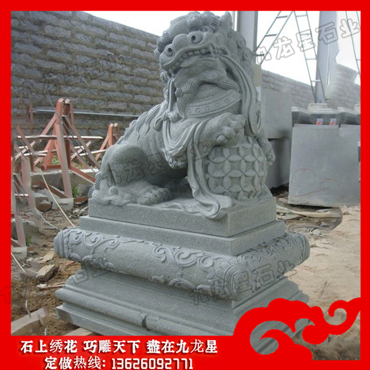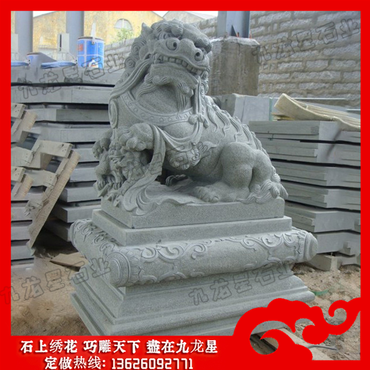 石雕潮汕獅圖片造型既象獅子,又不象獅子,是一種經(jīng)過夸張美化了的藝術(shù)形象。按著名木雕藝術(shù)家張襤軒的傳藝口訣:“廳獅十二兩頭”意思是潮汕獅頭的特色,著重于夸張獅頭,突出重點(diǎn)。石雕潮汕獅獅頭高昂。鼻大嘴闊、雙目圓瞪,頭和腳遍布卷毛,身披鬃毛道道,既符合獅子的生態(tài),又同整體的夸張相協(xié)調(diào)。頭大身小,但因坐勢(shì)十分得體,因而令人感到它體態(tài)渾厚有力而工整優(yōu)美,莊嚴(yán)雄偉而 生動(dòng)有趣。