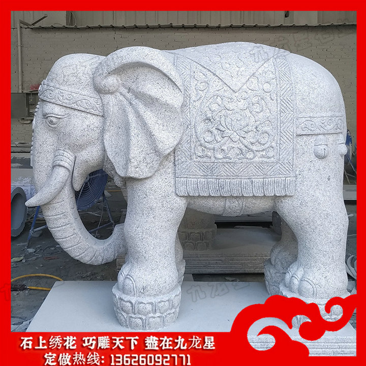 石頭雕刻大象的材料可以選擇的有很多,比如天青墨玉、霞玉、緬甸玉、砂巖、花崗巖、漢白玉等,不管是什么材質(zhì)的別墅門口石雕大象,都是非常地精致秀美。石頭雕刻大象的寓意就是吉祥如意、心想事成的含義。傳說(shuō)大象是觀音的坐騎,也是觀音的隨從,可以給人們帶來(lái)保護(hù)同時(shí)還可以避免災(zāi)難。石頭雕刻大象多少錢?通常一對(duì)在一萬(wàn)到十萬(wàn)不等,尺寸規(guī)格越大價(jià)格也就越高,同時(shí)如果要是選擇漢白玉雕刻,那么價(jià)格也會(huì)相對(duì)提升,具體的歡迎致電詳詢。