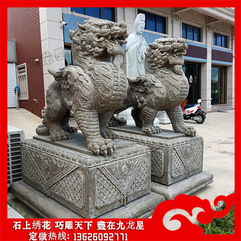 在大門口擺石雕貔貅貔貅的越來越多了,吉祥物石雕貔貅圖片的功用表現(xiàn)在以下兩個(gè)方面:(一)鎮(zhèn)宅化煞辟邪的作用。將貔貅放在家中,可以趕走邪氣,加強(qiáng)好運(yùn),成為家中的守護(hù)神,保全家平安。(二)趨財(cái)旺財(cái)?shù)淖饔谩T诩艺蚬ぷ鞯攸c(diǎn)的適當(dāng)位置放置貔貅,可收旺財(cái)之效。一般做偏行的都認(rèn)為“貔貅”會(huì)旺偏財(cái)?shù)?,所以他們都?huì)在公司和營(yíng)業(yè)地方擺放一對(duì)石雕貔貅。一般擺放玉質(zhì)的貔貅,催財(cái)?shù)牧α繒?huì)更強(qiáng)。大門口擺石雕貔貅的位置也有講究,一般是頭部朝向門口或窗戶。以制作材料來看,貔貅像有金屬制的、木雕的、玉刻的。玉不僅可以使人的品行高潔,還可以使人身體健康。佩帶貔貅也要選玉制的。又因?yàn)椤熬颖鹊掠谟瘛?。玉含有仁、知、義、禮、樂、忠、信、天、地、德、道等十一德,所以近些年來,佩帶玉貔貅的人越來越多。