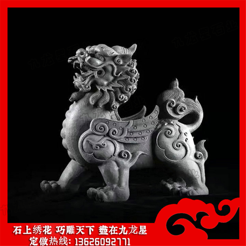 石貔貅(大門口擺石雕貔貅 吉祥物石雕貔貅圖片)——九龍星石業(yè)。